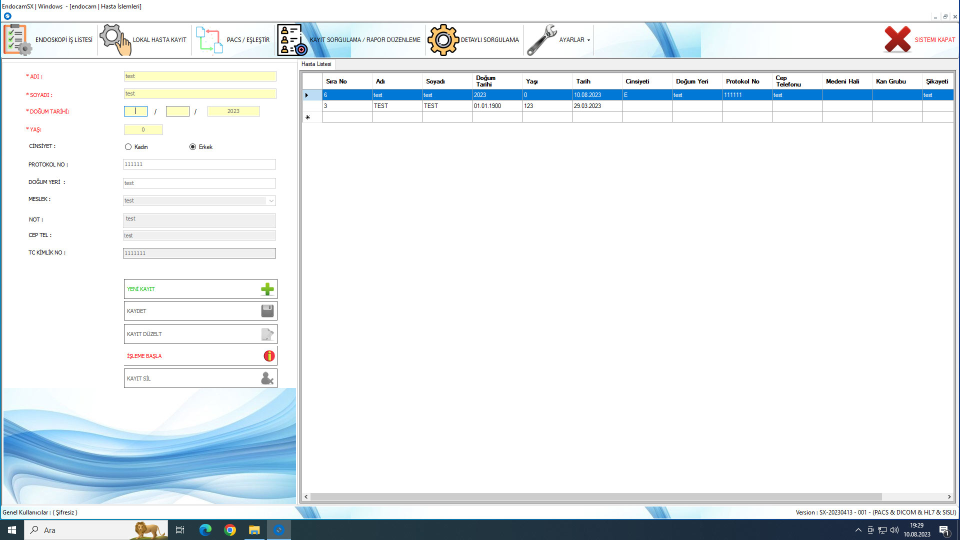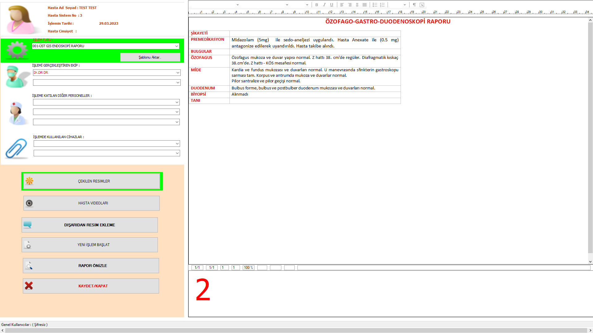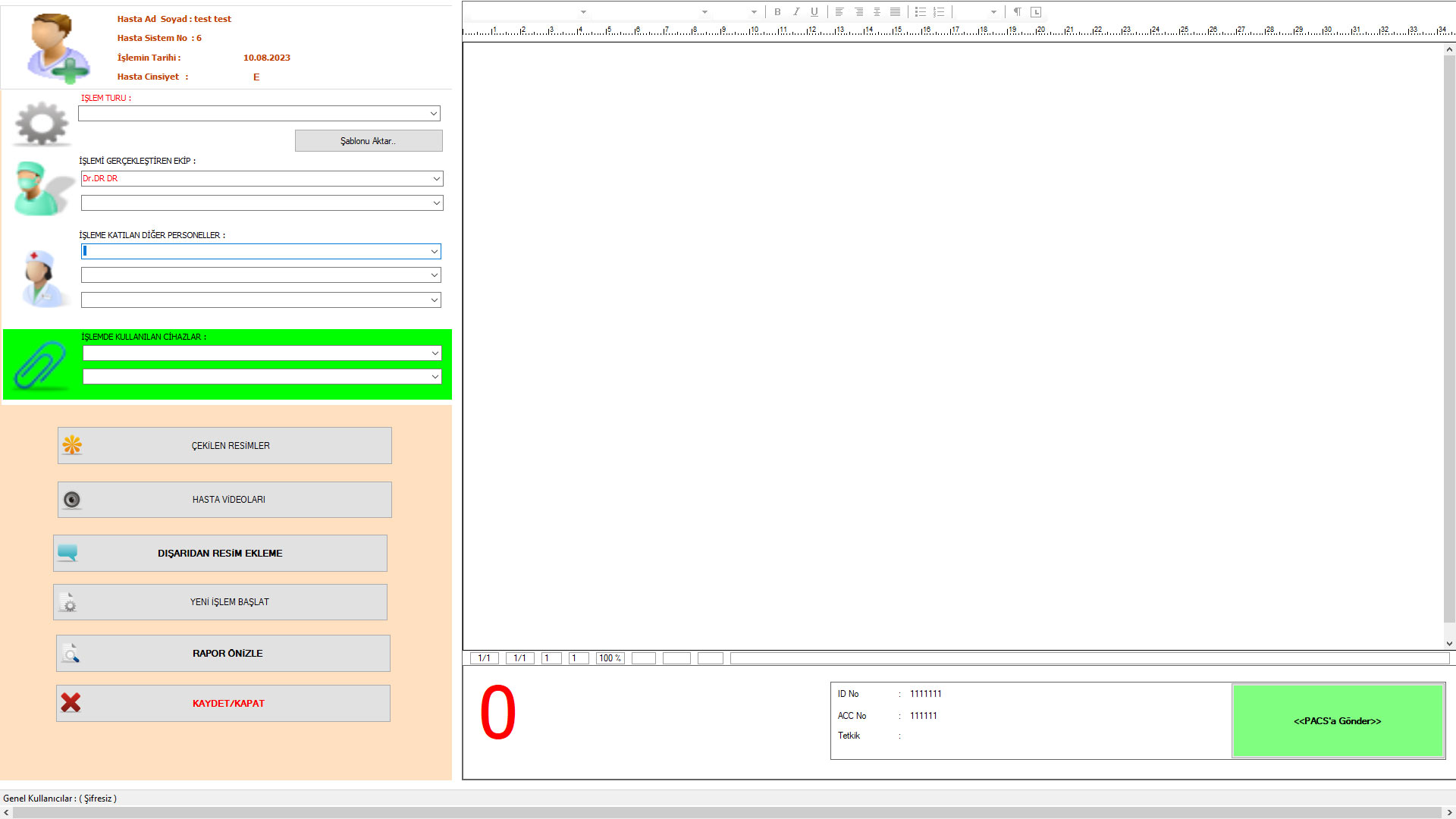 Hasta kayıtları, doktor tanımları, çekilen fotoğraflar veya rapor sayfaları üzerinde herhangi bir kısıtlama yoktur.